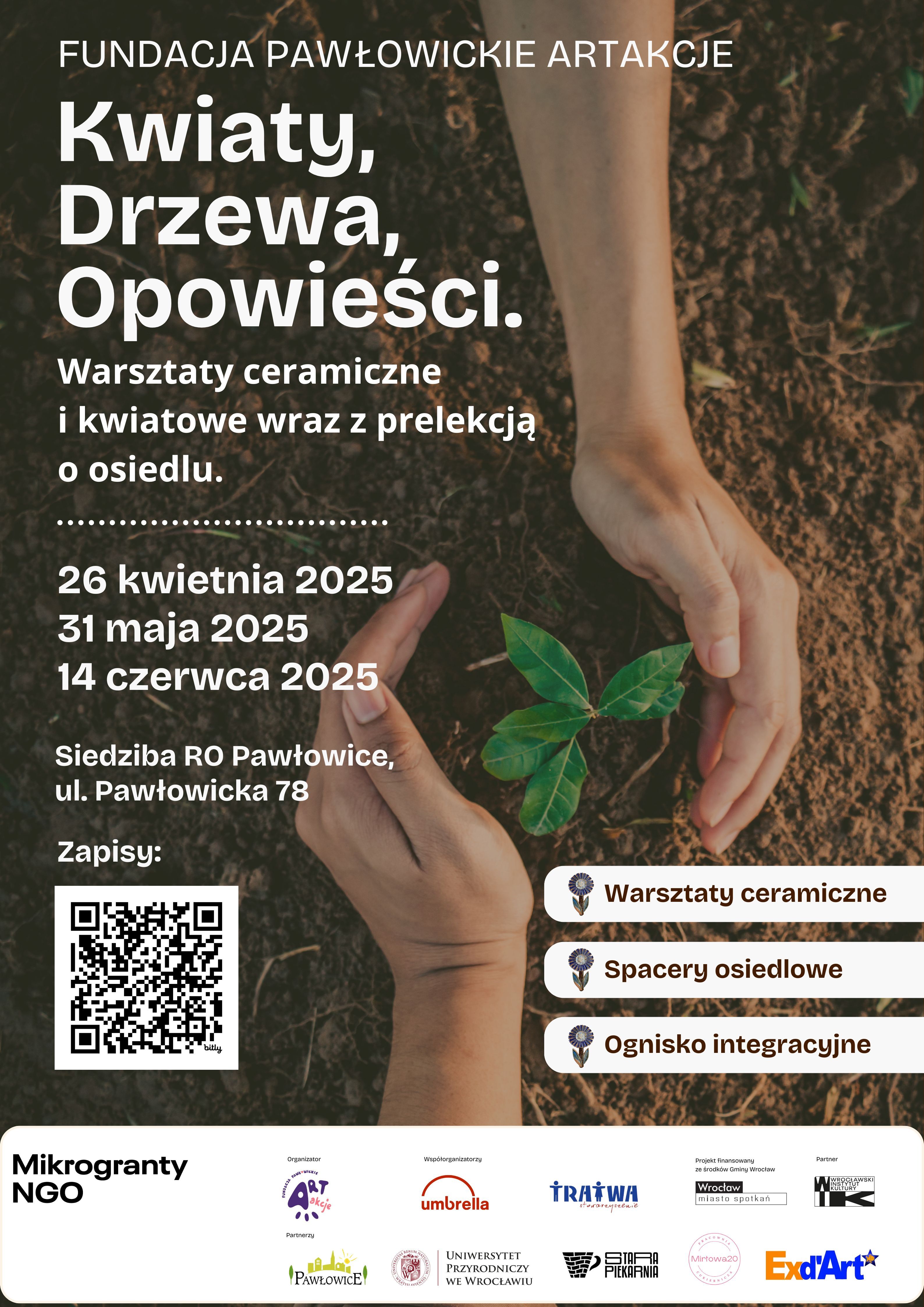 Ceramiczne tabliczki, inspirowane nazwami ulic osiedla Pawłowice, powstały w ramach projektu „Pawłowice: Kwiaty, drzewa, opowieści. Warsztaty ceramiczne i kwiatowe wraz z prelekcją o osiedlu”, realizowanego przez Fundację Pawłowickie ArtAkcje. Przedsięwzięcie zostało dofinan-sowane z Programu „Mikrogranty NGO” (edycja styczeń 2025), finansowanego ze środków Gminy Wrocław. Tabliczki zostały wykonane podczas warsztatów prowadzonych przez instruktorki ceramiki z Centrum Działań Twórczych Stara Piekarnia.